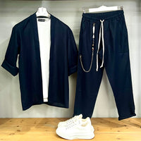 Με προσεγμένους συνδυασμούς από πουκάμισα, παντελόνια, κιμονό και σακάκια, όλα κατασκευασμένα από υψηλής ποιότητας υλικά, η συλλογή μας προσφέρει άνεση και στυλ σε κάθε στιγμή της ημέρας.