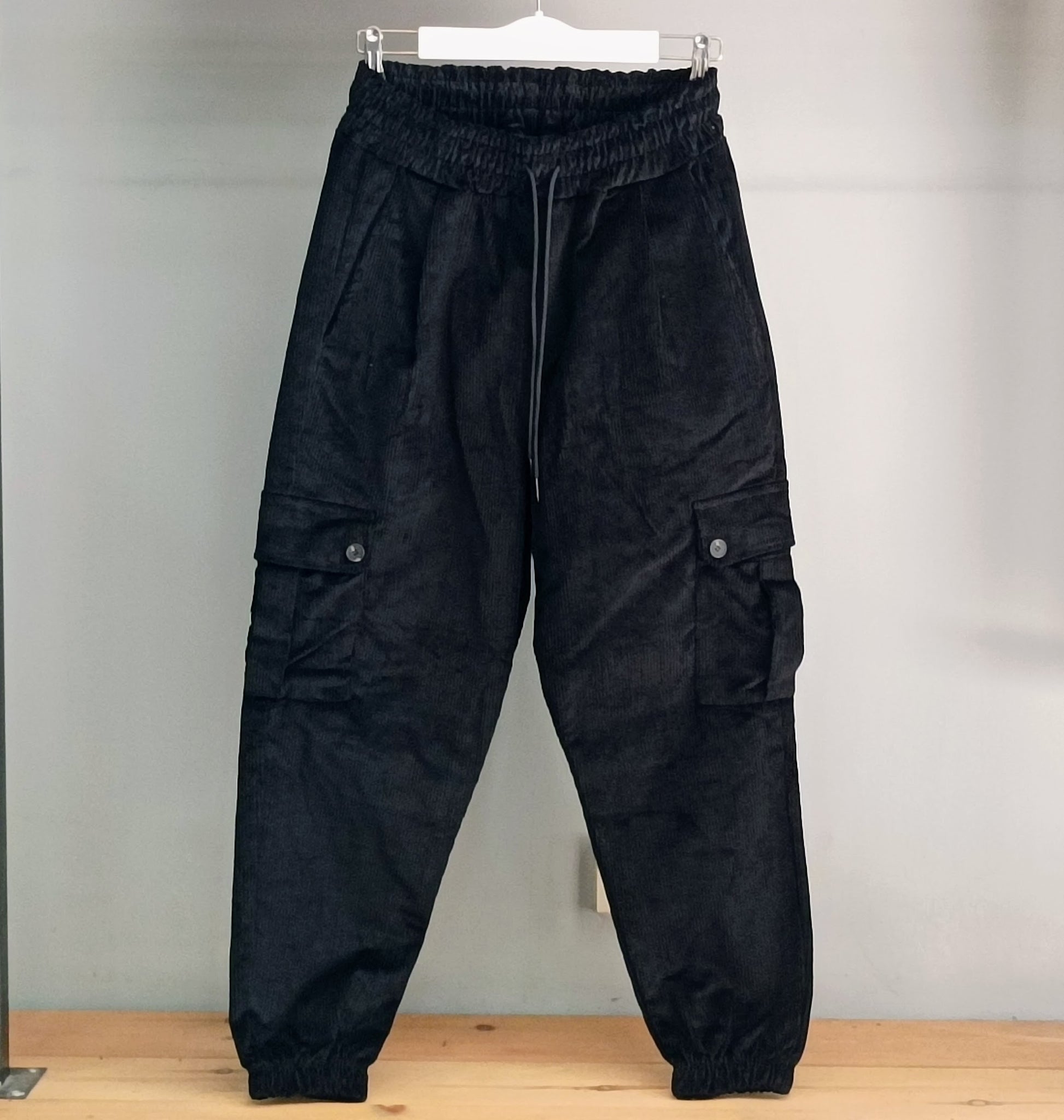 Αναβαθμίστε την ανδρική σας γκαρνταρόμπα με αυτό το ανδρικό παντελόνι Cargo σε μαύρο χρώμα από το Moda Loca. Αυτό το παντελόνι συνδυάζει την άνεση και το στυλ με τον απόλυτο τρόπο. Κατασκευασμένο από υψηλής ποιότητας κοτλέ ύφασμα, προσφέρει άνετη εφαρμογή και είναι εξοπλισμένο με λάστιχο στη μέση και στο τελείωμα, εξασφαλίζοντας άψογη εφαρμογή καθ' όλη τη διάρκεια της ημέρας.